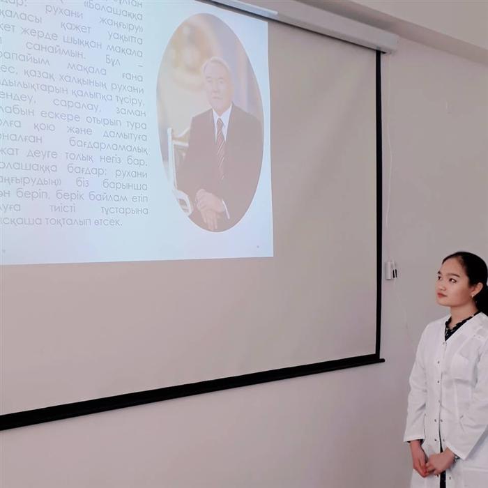 Куратор эдвайзер 2 к. МПД, старший преподователь кафедры эпидемиологии Адилова М.Т. со студентами 2 курса специальности медико ппрофилактическое дело провела кураторский час на тему «Болашаққа бағдар: рухани жаңғыру». Основной целью кураторского часа является информирование студентов о программе "Болашаққа бағдар: «Рухани жаңғыру", развитие патриотических, интеллектуальных и творческих способностей молодежи и расширение сферы применения государственного языка, формирование и развитие молодежной активности и патриотизма, привлечение к решению социальных проблем, укрепление дружеских отношений между студентами региона. По итогам кураторского часа можно констатировать, что все студенты аргументированно формулировали свои мысли, через обсуждение пунктов программы «Рухани жаңғыру», обсудили все ключевые направления развития Казахстана, сделали анализ мировых трендов в области политики, внешнеэкономических связей, совершили экскурс в историю страны, адаптируя итоги своих выступлении с собственным взглядом на развитие современного общества.