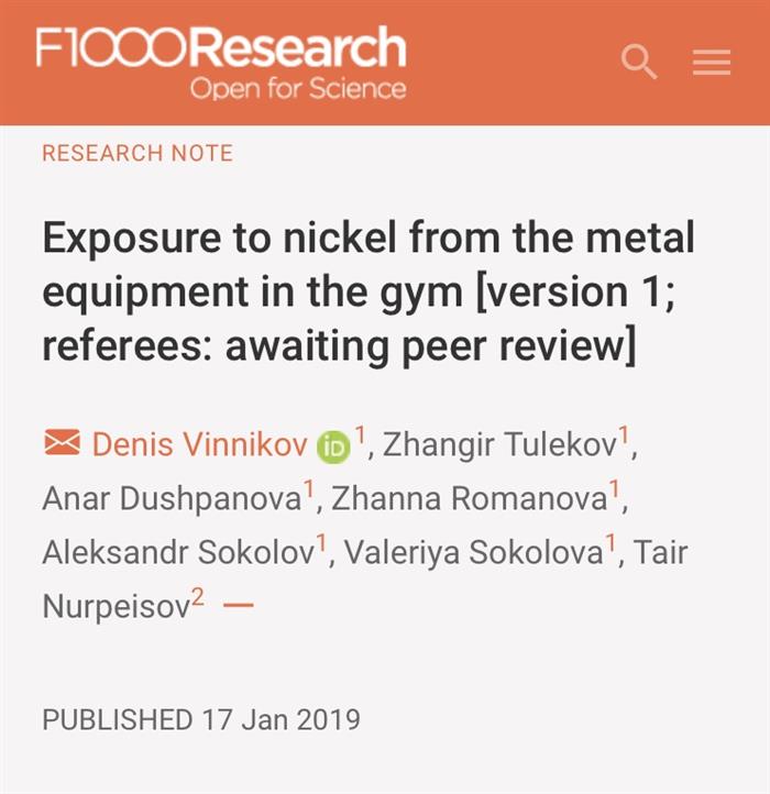 Тренировки в спортивных залах являются довольно распространенным видом досуга у взрослых, учитывая положительное влияние регулярных занятий спортом на сердечно-сосудистую систему, настроение и, возможно, уверенность в себе. Однако мало известно о неблагоприятных последствиях посещения тренажерного зала с соответствующими воздействиями. Люди, посещающие тренажерный зал, могут подвергаться воздействию различных химических веществ, включая металлические стержни и штанги. Они обычно изготавливаются из нержавеющей стали, и химический состав последней может варьироваться; однако, выбранные металлы в стали, такие как никель, могут быть связаны с неблагоприятными последствиями для здоровья, т.к. никель является известным канцерогеном. В научном журнале «F1000Research » была опубликована статья сотрудников кафедры эпидемиологии, биостатистики и доказательной медицины по результатам экспериментального исследования воздействия никеля, измеренного по концентрации никеля в волосах у тех, кто контактировал с металлическим оборудованием в тренажерном зале. Со статьей можно ознакомиться по ссылке: https://f1000research.com/articles/8-68/v1