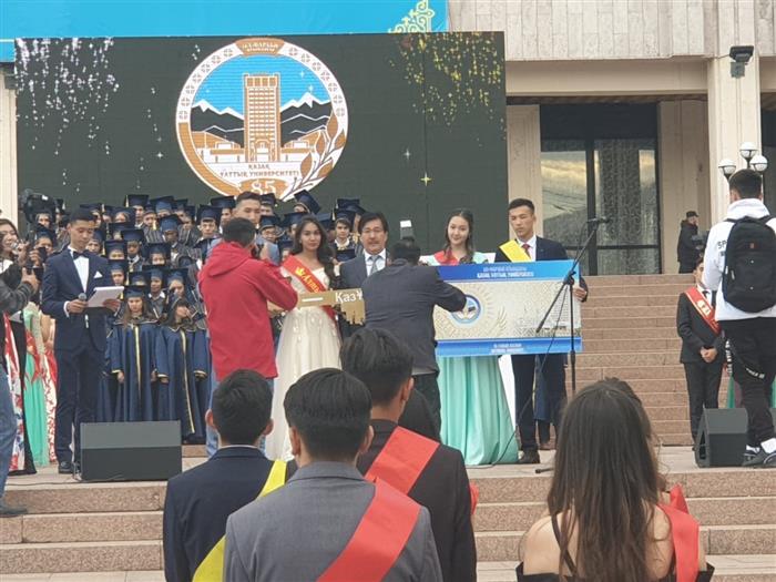 Посвящение первокурсников в ряды студентов Казахского национального университета имени аль-Фараби.