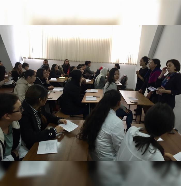 В рамках педагогической практики магистрантами Габасовой Мейрамгуль, Байдильдаевой Меруерт и докторантами Габасовой Сауле, Жумабаевым Русланом было проведено воспитательное мероприятие в группе студентов на тему: «Профилактика поведенческих факторов риска». Студенты активно с интересом участвовали в ходе мероприятия, задавали вопросы, выполняли все предложенные интерактивные задания.