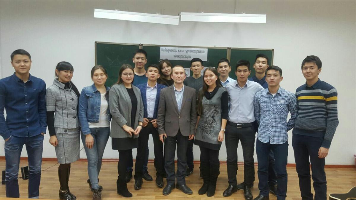 26.11.2016В рамках проекта «Айналаңды нұрландыр» куратор-эдвайзер кафедры информационных систем Кәрібаева А.С. провела открытый кураторский час на тему «1 декабря – день первого Президента».