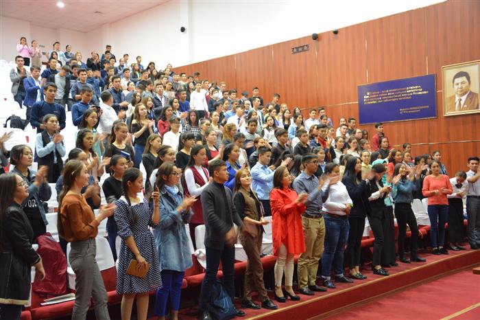 В Большом зале заседаний имени академика У.А.Джолдасбекова механико-математического факультета прошла встреча студенческих лидеров университета с видным общественным деятелем, поддерживающим развитие государственного языка, кандидатом филологических наук Асылы Алиевной Осман под названием «Ұлттых рух – рухани жаңғырудың негізі».
