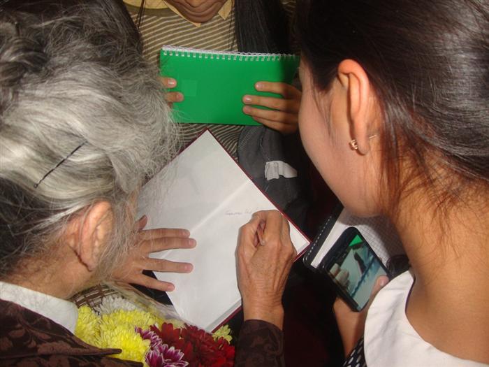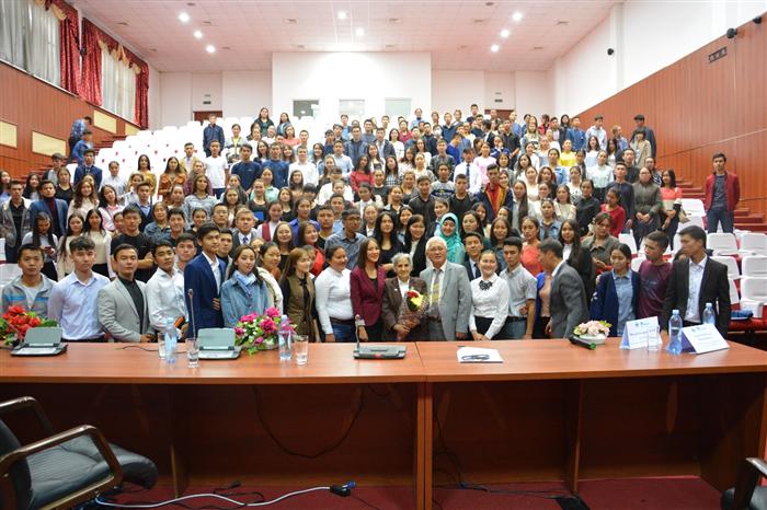 Встреча-беседа была посвящена воросам воспитания студенческой молодежи патриотизму и повышению статуса государственного языка. Главное действующее лицо вечера поделилась своими мыслями о судьбе казахского языка, ответила на животрепешущие вопросы студентов о жизни общества. Талантливые студенты читали стихи-посвящения общественному деятелю, исполнили эстрадные, народные песни и кюи, получили автографы и сфотографировались на память.