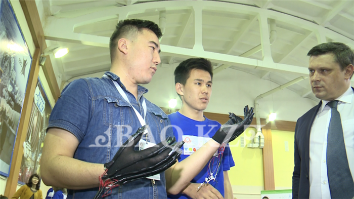 "Мы сделали "умный браслет" и "умную перчатку". Браслет называется "хелпер", а перчатка – "глов си плюс". Наш нидноуэр, с которым мы работали, не может слышать и говорить. Главные его проблемы: не слышит дверной звонок, сигналы машин, трамваев. Для павлодарца это очень проблематично. Кроме того, он не может вызвать скорую помощь, полицию, пожарных. Мы в браслете сделали три SOS-кнопки. Когда он, например, вызывает полицию, то оправляется три автоматических сообщения: одно – родным, второе – социальному работнику, а третье – в полицию", - рассказал докторант второго курса КазНУ им. Аль –Фараби Аскар Аскеров.