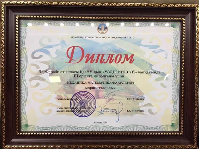 Факультет механики и математики был награжден за III место в Казахском национальном университете имени аль-Фараби в конкурсе «Лучшая юрта».