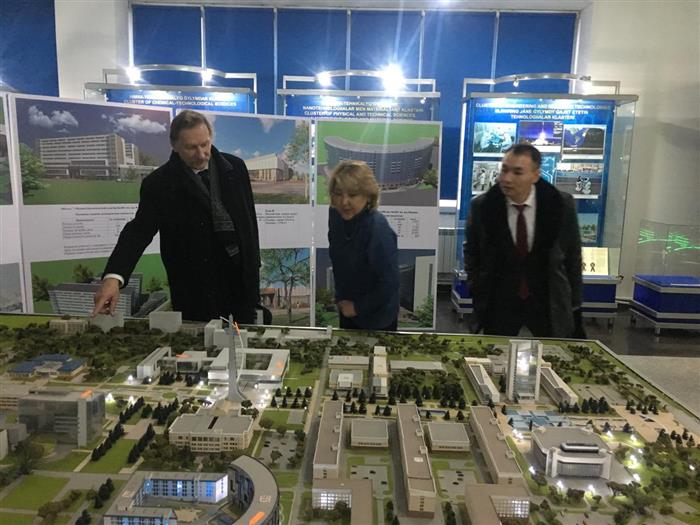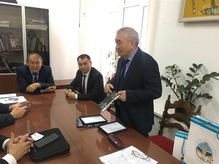 В ходе встречи были обговорены возможности сотрудничества двух университетов, где присутствовали также декан механико-математического факультета Жакебаев Д.Б., начальник управления внешних связей Жолдыбекова Б.Е., заместитель декана по НИДиМС Бектемесов Ж.М. и Директор Школы-филиала при НГУ Салтыков Д..