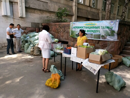В биологическом факультете проводилась ярмарка продуктов Агробиостанции. В ярмарке продано разные виды фруктов.
