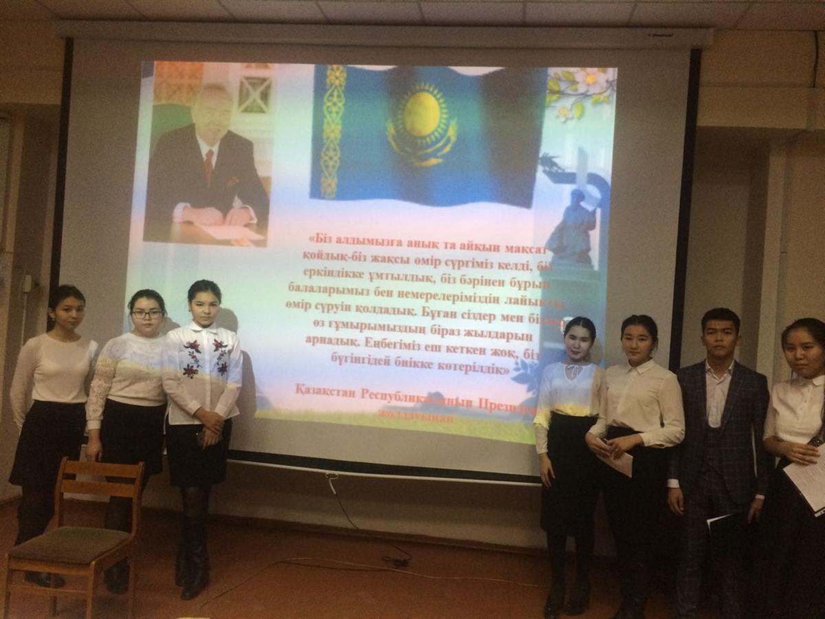 По случаю Дня Президента 30.11.2017г. в 11:00 прошла научная конференция «Бабалар жолын жалғаған, еңсесі биік – Елбасы», организаторами которого являются студенты 1 курса 1 группы факультета Филологии и мировых языков, кафедры казахского языка и литературы и профессоры исторического факультета Козыбакова Ф.А, Сайлан Б, Каражан К.С, преподаватели Тасилова Н, Искакова К.