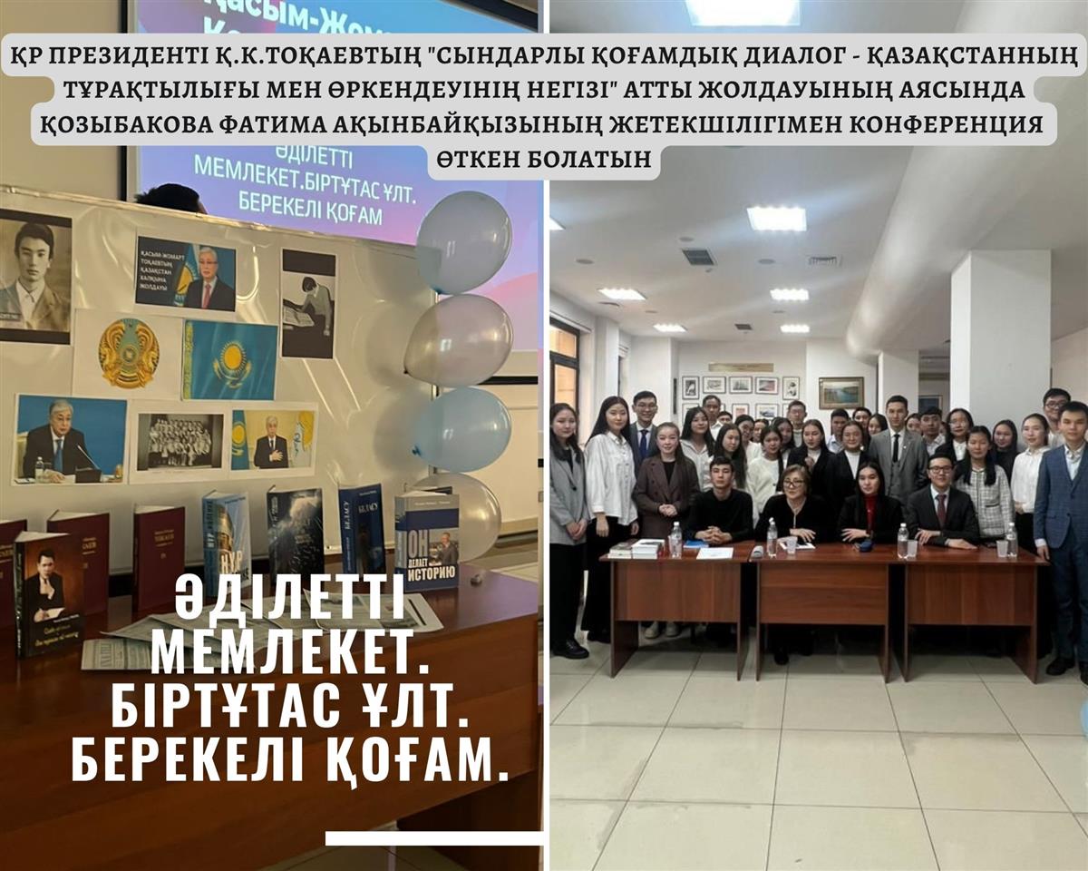 На конференции было организовано обсуждение Послания Президента и выборов - исторического дня для нашей страны. В ходе научной конференции студенты ознакомились с жизненным путем и трудами главы государства. В частности, подготовленные студентами работы были представлены в виде реферата, работы с картой и презентаций. Кроме того, в качестве выставки были представлены произведения и книги, избранные статьи в газетах и журналах. Такая уникальная методика позволила расширить кругозор знаний, погрузившись в суть и смысл послания, ознакомившись с опытом нашего президента– личности, ставшего желанным народом, с первых лет независимости и до наших дней.