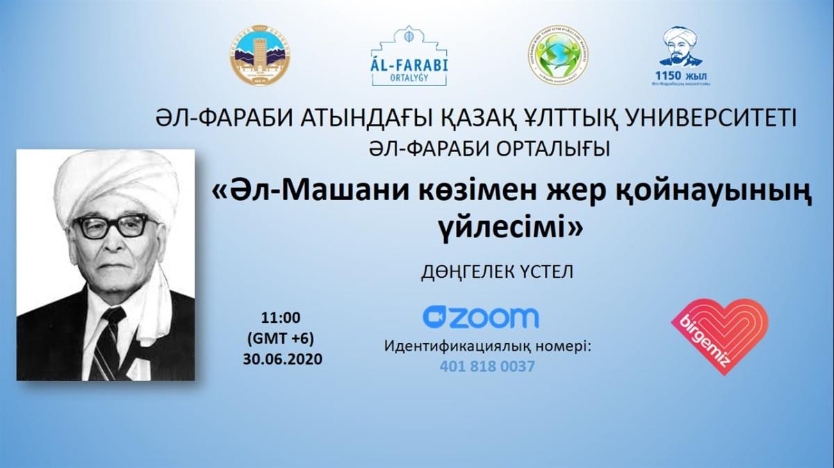 30 июня 2020 года Центр аль-Фараби и кафедрой картографии и геоинформатики факультета географии и экологии организовали круглый стол ′′ Гармония недр глазами аль-Машани ", К 1150-летию Абу Насра аль-Фараби в онлайн-формате.
