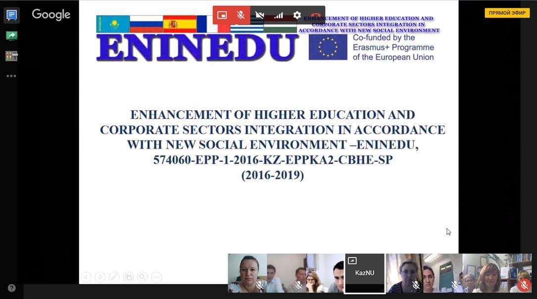 03 июля 2018 года Казахский Национальный Университет им. аль-Фараби провел очередной онлайн вебинар проекта «Enhancement of Higher Education and Corporate Sector Integration in Accordance with New Social Environment».