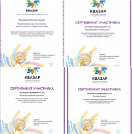 студенты 3-го курса специальности «Менеджмент», кафедра менеджмента и маркетинга Высшей школы экономики и бизнеса Казахского национального университета им. Аль-Фараби, приняли участие в организованной Центром оценки и развития проектного управления и Аналитическим центром при правительстве Российской Федерации – ежегодной студенческой онлайн олимпиаде по управлению проектами «Квазар» .