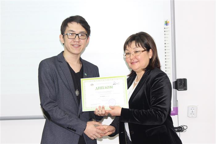 Дипломом I степени – Қамшыбек Қ. «Тиімді мемлекеттік қызмет – сандық трансфрмацияға өтудің маңызды факторы» – научный руководитель Смағулова Г.С.