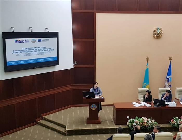 2 марта 2019 года в КазНУ имени аль-Фараби прошло заседание Республиканского учебно-методического Совета на тему «Организация учебного процесса в вузах в условиях реформирования системы образования». На заседании участвовали ректоры и проректора более 40 вузов Казахстана, члены учебно-методического объединения и представитель Национального офиса Erasmus+ в Казахстане. Заместитель декана ВШЭиБ по научно-инновационной деятельности и международным связям, PhD, координатор проекта Erasmus+ ENINEDU Жидебеккызы Акнур выступила с 45-минутным докладом об европейском опыте создания системы взаимодействия университетов с бизнес-сектором.