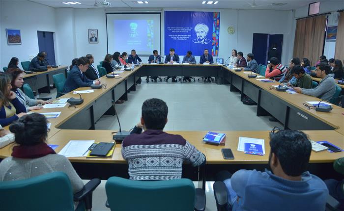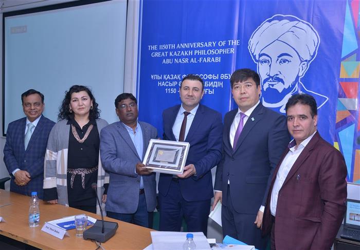 В рамках визита делегации КазНУ им. аль-Фараби в Республику Индию декан ВШЭиБ, д.э.н., профессор Сагиева Римма Калымбековна приняла участие в круглом столе, приуроченный 1150-летию Абу Насра Аль-Фараби, организованный КазНУ в г. Нью-Дели при поддержке Посольства Республики Казахстан в Индии и Университета им. Джавахарлала Неру.