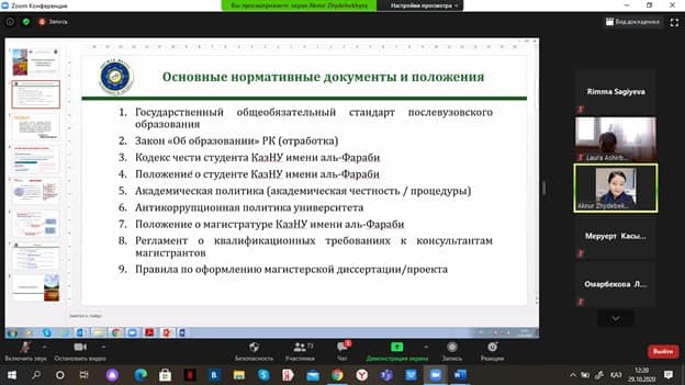 29 октября 2020 года в Высшей школе экономики и бизнеса КазНУ имени аль-Фараби прошла встреча с магистрантами 1-курса.
