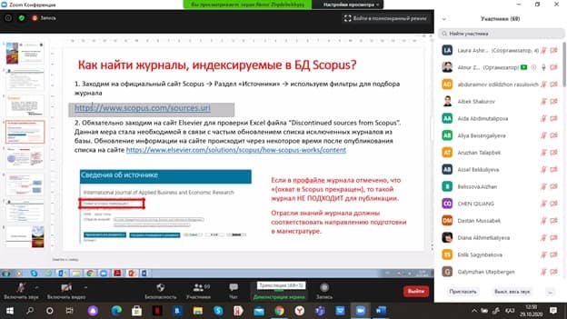 Заместитель декана по НИД и МС, PhD Жидебеккызы Акнур ознакомила магистрантов с основными положениями и процедурными документами, разъяснила вопросы касательно публикации в БД Scopus/WoS.