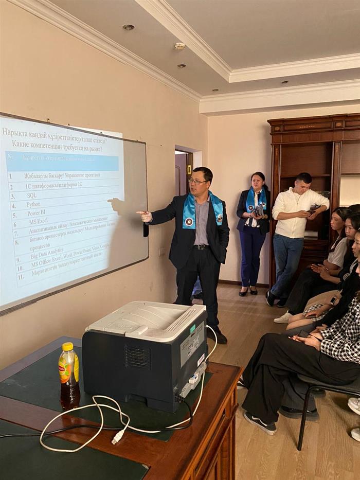 Профессорско-преподавательский состав кафедры, в лице Турарова Д.Р., Хаджиевой А.Б., Жоламанова Е.М., Парманкуловой И.С., руководителя образовательного центра Әбеу Бағлан и преподавателей Дайрабай Бақдәулет, Ермекбай Гүлсара раскрыли все вопросы по подготовке конкурентоспособных специалистов в области экономики и бизнеса с присуждением степени бакалавра, магистра и доктора философии, а также о возможностях получить образование по двудипломным образовательным программам и образование в вузах-партнерах (Китай, Германия, Франция, Италия, Россия, Испания, Австралия и др.). Обучающимся были представлены процессы и алгоритмы формирования их как современной личности в стенах университета путем развития различных профессиональных, научно-исследовательских компетенций, аналитических, экономико-математических, цифровых, творческих, коммуникативных способностей и обозначены им их перспективы карьерного роста по окончании вуза.