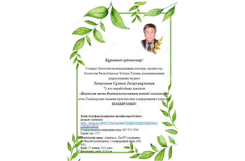 05.07.2021С 1 по 3 июля в гибридном формате факультетом биологии и биотехнологии Казахского национального университета им. аль-Фараби в сотрудничестве с Мугла Ситки Кочман Университетом была организована международная науно-практическая конференция «5-й симпозиум по Евроазиатскому биоразнообразию (SEAB-2021)».