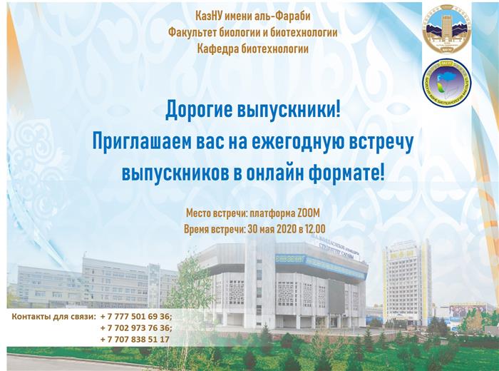 Кафедра биоразнообразия и биоресурсов приглашает Вас 30 мая 2020 года в 12.00 принять участие в работе Форума выпускников КазНУ, посвященного 1150-летию аль-Фараби.