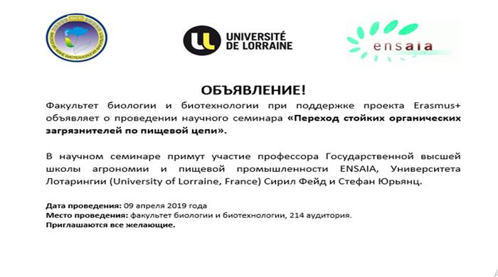- Профессор Государственной высшей школы агрономии и пищевой промышленности ENSAIA, Университета Лотарингии (University of Lorraine, France) – Сирил Фейд.