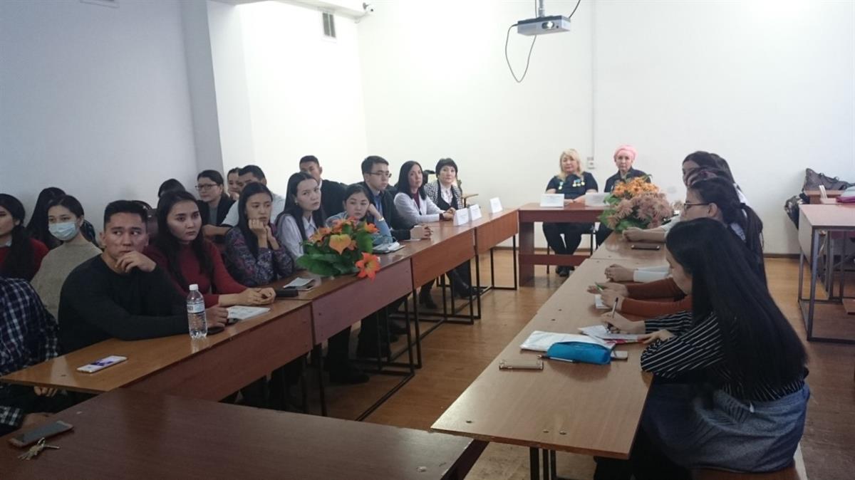 На кураторском часе присутствовали и.о.заведующей кафедрой к.б.н. Нармуратова М.Х. и старший куратор кафедры биотехнологии Бектилеуова Н.К.