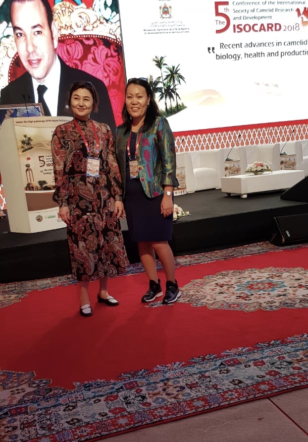 16.11.2018Старшие преподаватели факультета к.б.н. М.Х. Нармуратова и PhD Г.С. Конуспаева выступили с докладом в 5-ой международной конференции Международного Общества исследований и развития Камелидов (ISOCARD): «Последние достижения в Верблюдовых: биология, здоровье и производство», которая прошла в г. Эль-Аю́н, Морокко.
