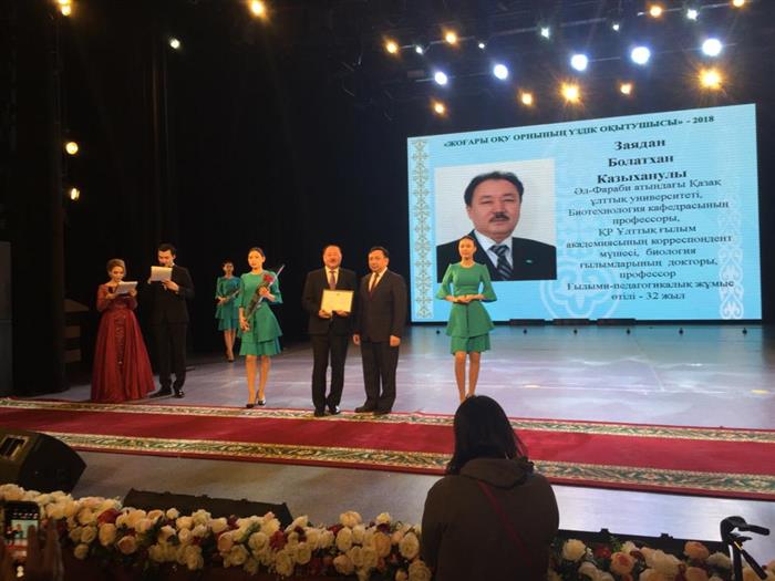Декан факультета биологии и биотехнологии Казахского национального университета, доктор биологических наук, профессор Болатхан Казыханович Заядан удостоен премии «Лучший преподаватель университета».