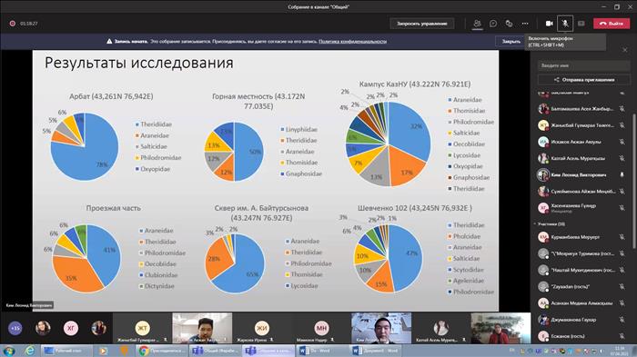 7 апреля на факультете биологии и биотехнологии КазНУ им. Аль-Фараби прошла Международной конференции студентов и молодых ученых «Фараби Әлемі». На открытии конференции выступил декан факультета биологии и биотехнологии доктора биологических наук, профессора, академик НАН РК Заядан Болатхан Казыханович. Затем доклады были заслушаны по секциям. В секцию актуальные проблемы биологии и биоразнообразии поступило 130 тезисов из 14 организаций. Секцию актуальные проблемы биологии и биоразнообразии вела председатель: д. б. н.,профессор Курманбаева Меруерт Сакеновна, в составе члены комиссий д.б.н., профессор Мухитдинов Наштай Мухитдинович, д. б.н., профессор Нуртазин Сабыр Темиргалиевич, к. б. н., доцент Мамилов Надир Шамилевич, старший преподаватель Жаркова Ирина Маратовна. Всего с презентациями выступили 16 студентов, из которых следующие студенты заняли призовые места: I-место, Ким Леонид (IV курс) научный руководитель: к.б.н., доцент Мамилов Н.Ш.; II-место, Адал Лашын (IV курс) научный руководитель: к.б.н., и.о. доцента Омарова Ж.С., Жанысбай Гульмарал (IV курс) научный руководитель: к.б.н., и.о., доцент Шалгимбаев С.М.; III-место, Туралиева Гульбакыт (II курс, магистрант) научный руководитель: к.б.н., доцент Ахтаева Н.З., Искаков Акжан (I курс, магистрант) научный руководитель: к.б.н., доцент Мамилов Н.Ш.; Казтай Асель (IV курс) научный руководитель: к.б.н., доцент Есжанов Б.Е. Поздравляем всех руководителей и студентов с призами.