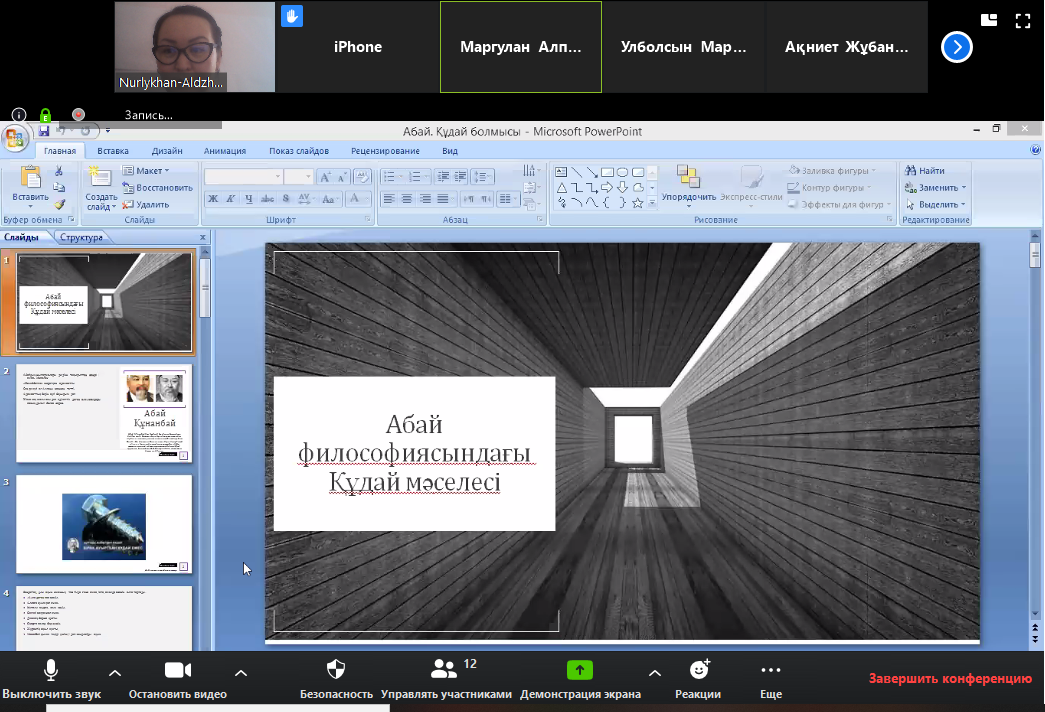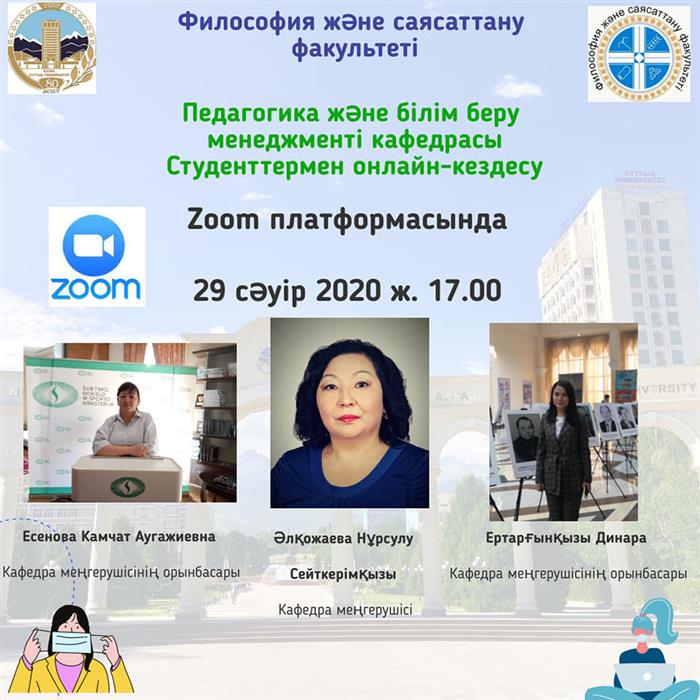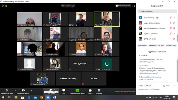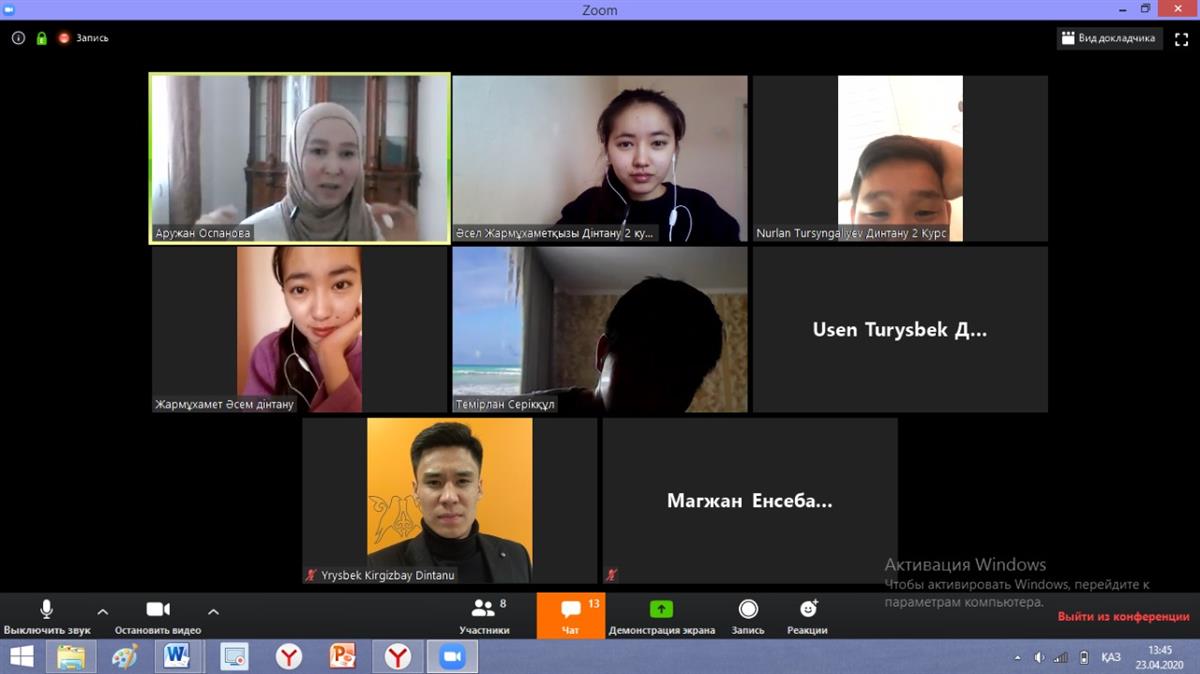 11.05.2020С 27 апреля по 12 мая текущего года магистранты факультета философии и политологии КазНУ им.аль-Фараби специальностей "Религиоведение, "Исламоведение", "Философия", "Социология", "Конфликтология" проходят научную стажировку в Институте философии, политологии и религиоведения КН МОН РК в дистанционном формате.