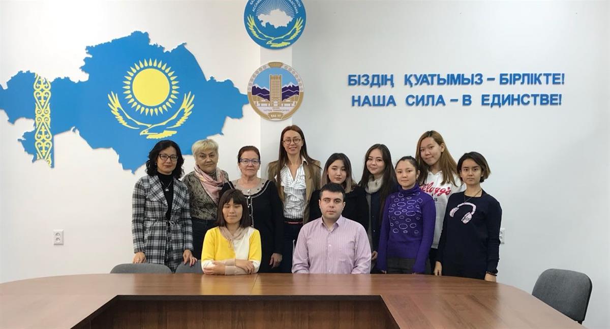 11 октября 2018 года в рамках проекта "Айналанды нұрландыр" было проведено воспитательное мероприятие с международным участием коллеги из Франции Nina Ryckewaert, доктора психологии, нейропсихолога Департамента взрослой полиинвалидности Ассоциации Cazin-Perrochaud, в форме круглого стола на тему: