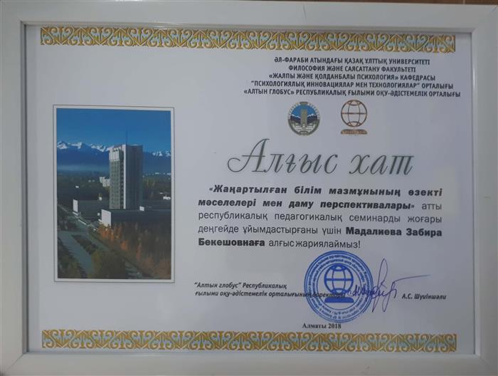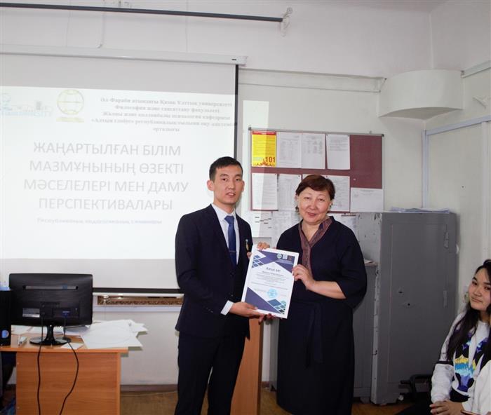 и кафедрой Общей и прикладной психологии факультета Философии и политологии. Была проведена презентация 1 номера журнала «Инноватор». Для участников был проведен семинар-тренинг « Формирование креативности у учащихся методами арт-терапии. Лучшие 20 учителей со всех городов республики Казахстан приняли участие в 4 Республиканском конкурсе «Лучший педагог-инноватор».