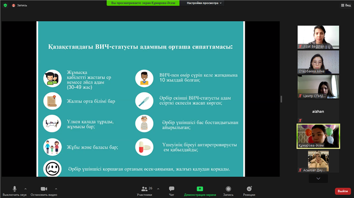 Онлайн-встреча студентов кафедры международного права факультета международных отношений с социальным врачом Центра по профилактике и борьбе со СПИД г. Алматы