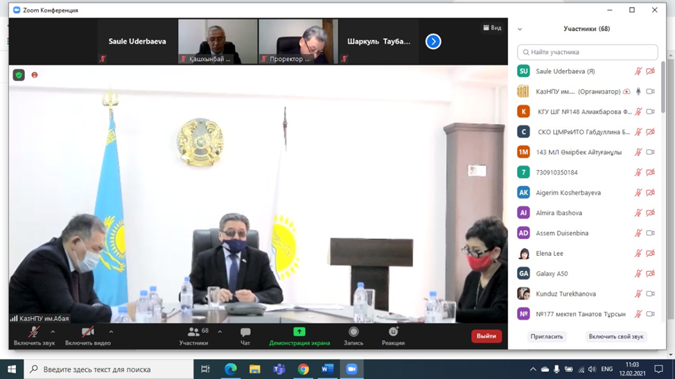 12 февраля 2021 года в КазНПУ имени Абая состоялось внеочередное расширенное онлайн заседание УМО, на котором были обсуждены вопросы подготовки плана действий по повышению качества знаний у школьников.