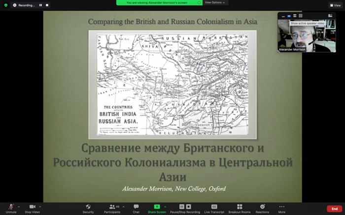 Профессор А. Моррисон в ходе лекции провел обширный анализ колониальной политики Британской империи в Южной Азии и Российской империи в Центральной Азии, а также провел сравнительный анализ особенностей британского и русского колониализма. Подробно описал и раскрыл сходства и различия колониальной политики двух империй.