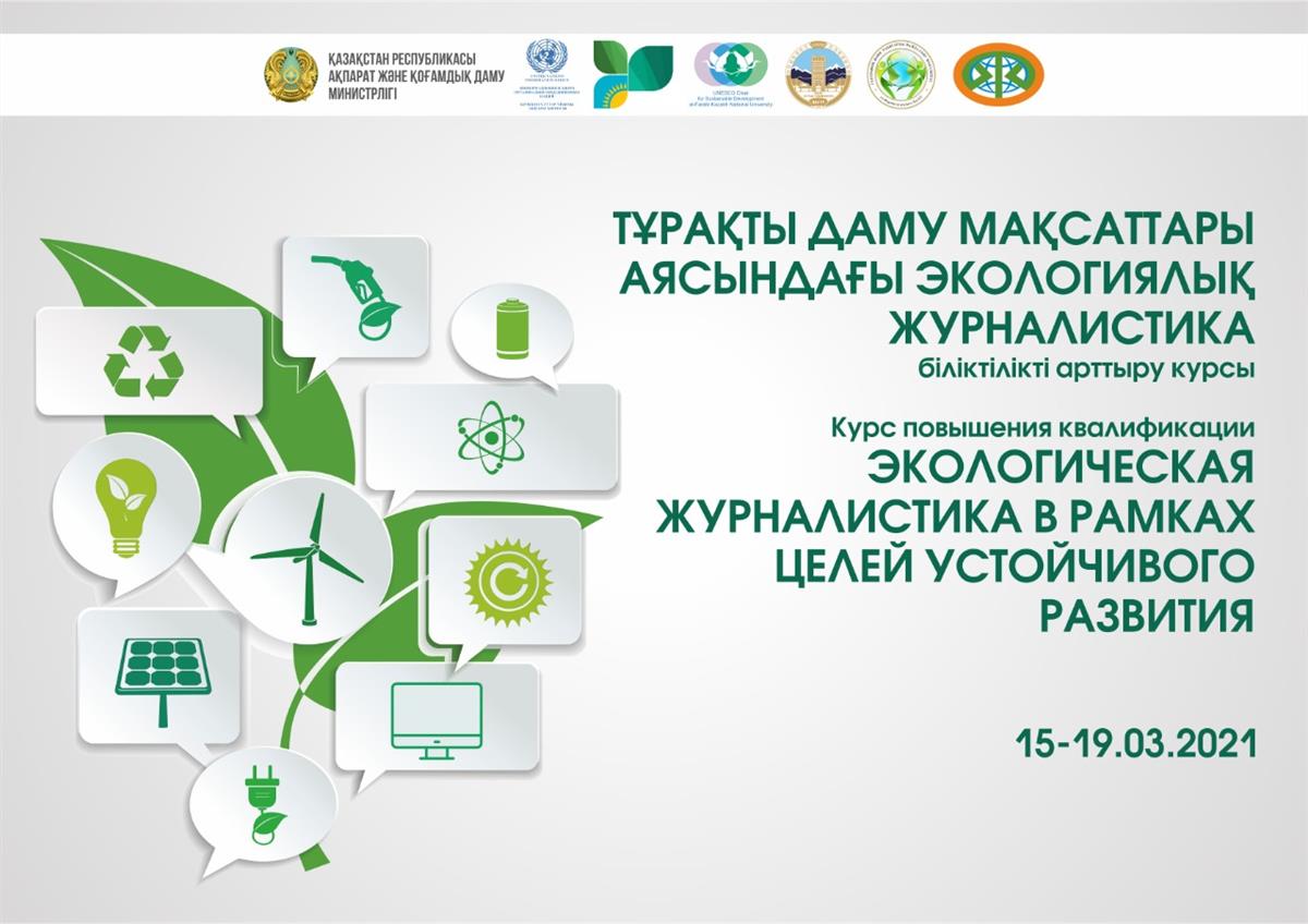 15 марта 2021 года в Казахском Национальном университете имени аль-Фараби стартовал курс повышения квалификации журналистов «Экологическая журналистика в рамках целей устойчивого развития» в рамках реализации Меморандума о взаимопонимании и сотрудничестве между Министерством информации и общественного развития РК, Казахским национальным университетом имени Аль-Фараби и Министерством экологии, геологии и природных ресурсов РК, заключенного в 2020 году.