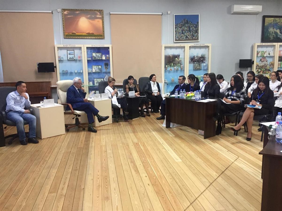 30.11. 2018г. Студенты КазНУ им. аль-Фараби, факультета медицины и здравоохранения, кафедры эпидемиологии, биостатистики и доказательной медицины Сарымсакова Джамиля и Скоп Елизавета приняли активное участие на круглом столе молодых ученых на тему: «Современный взгляд на инновационные национальные продукты питания», организованный кафедрой «Нутрициология с курсом профилактической медицины» КазНМУ им. С. Д. Асфендиярова. Круглый стол способствовал обмену опытом, определению перспективных направлений развития национальных продуктов питания.