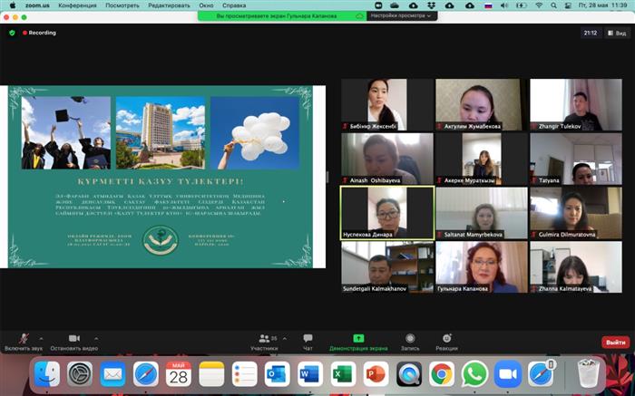 28 мая 2021 года в 11.00 часов на Факультете Медицины и здравоохранения Казахского Национального университета имени аль-Фараби в формате онлайн, на платформе ZOOM прошло традиционное ежегодное мероприятие «День выпускника КазНУ - 2021», посвященное 30-летию Независимости Республики Казахст