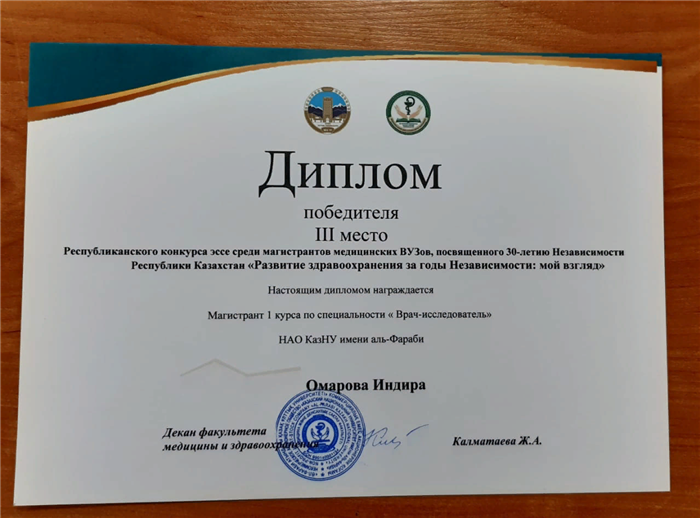ИТОГИ Республиканского конкурса ЭЭСЕ среди магистрантов медицинских вузов "Развитие здравоохранения за годы независимости: мой взгляд".