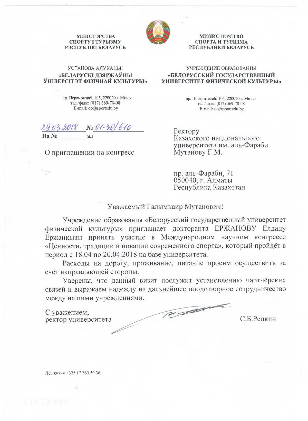 10.04.2023С 29 марта по 07 апреля 2023 года магистранты 2 курса кафедры физического воспитания и спорта Малиновский К., Зинбай А., Елеусинова А., в рамках академической мобильности прошли научную стажировку в РГКП «Национальном научно-практическом центре физической культуры» МП РК г.Астана (Казахстан). Целью научной стажировки является сотрудничество в области физической культуры и спорта, а также для разработка научно-исследовательских проектов и сбор материалов по теме магистерской диссертации. Научную стажипровку магистрантов курировала научный сотрудник центра PhD Отаралы С.Ж.