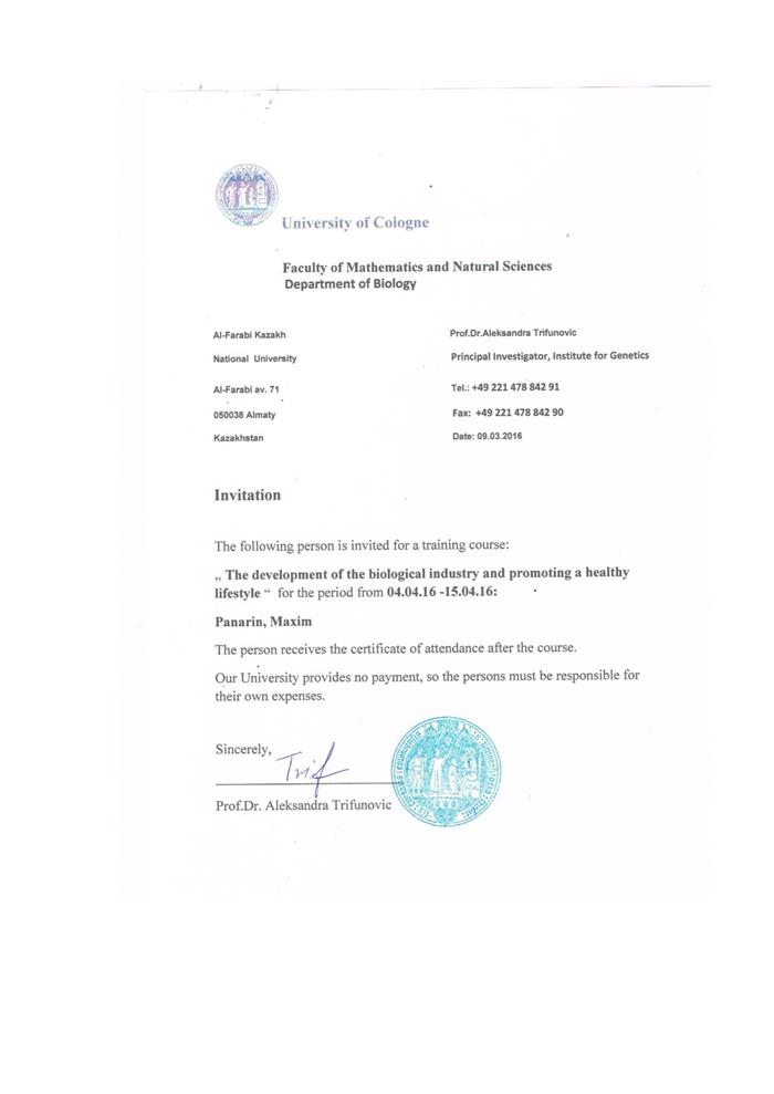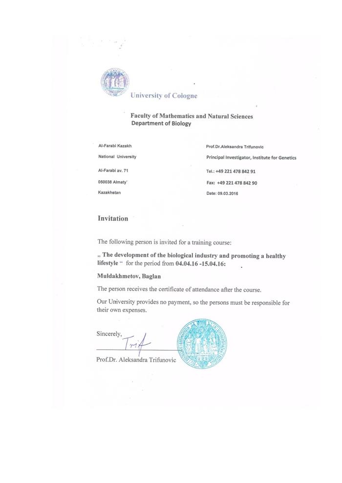 Магистранты Медицинского факультета – ВШОЗ кафедры физического воспитания и спорта по специальности «Физическая культура и спорт» Молдахметов Баглан и Панарин Максим прошли научную стажировку в Университете Кельна (Германия) по программе в области «Биологическое развитие и пропаганда здорового образа жизни» в период с 04.04.2016-15.04.2016 гг.