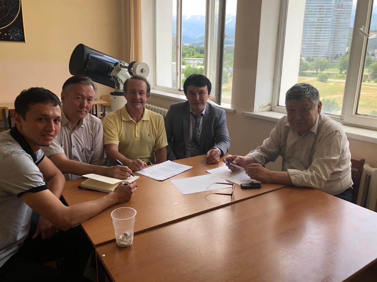 20.06.2018В физико-техническом факультете совместно с зарубежным профессором Miroshnichenko Anatoly из University of North Carolina at Greensboro, North Carolina, United States, который был КазНУ имени аль-Фараби в период с 2 по 20 июня 2018 года были обсуждены контент дисциплин и структура учебного плана, в результате чего зарубежный профессор предложил курс по сбору и обработке наблюдательного материала со всего мира по базам SIMBAD, NED, MAST и др., что позволяет обучающемуся иметь самые последние данные и быть в курсе современных направлении исследования не имея высокотехнологическое оборудование и время наблюдения.
