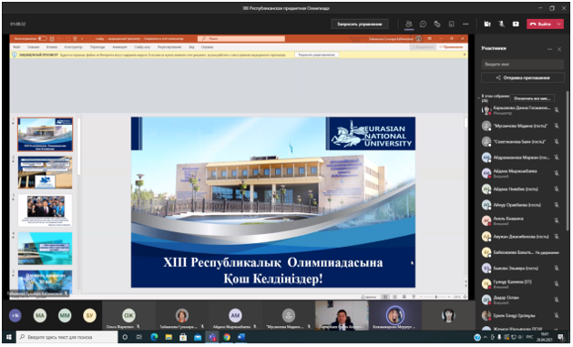 26-27 апреля 2021 года в ЕНУ им. Л.Н. Гумилева состоялся второй этап XIII Республиканской предметной олимпиады Министерства образования и науки РК по направлению «Стандартизация и сертификация». В олимпиаде приняли участие 30 студентов из 11 вузов РК. Команды представляли 8 городов Казахстана:
