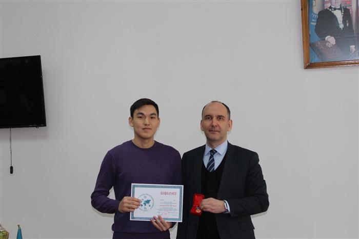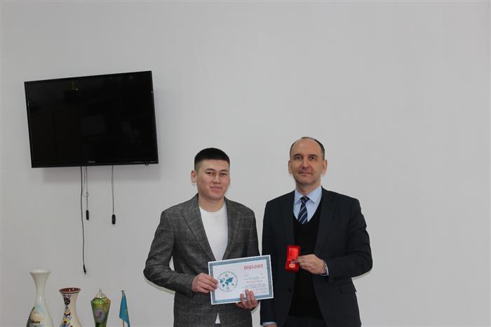 Студенты 4 курса специальности "Радиотехника, электроника и телекоммуникации" кафедры физики твердого тела и нелинейной физики Арын Ғалымжан и Амангелдинов Мерей удостоились золотой медали от Международной Академии информатизации (МАИН) за разработку отечественного оборудования для образовательных учреждений под руководством инженера Актаева Э.Т. и преподователей кафедры Алимгазиновой Н.Ш. и Толегеновой А.А. Ранее они заняли 1-место на Международной выставке и совместно с сотрудниками кафедры получили патенты на изобретение.