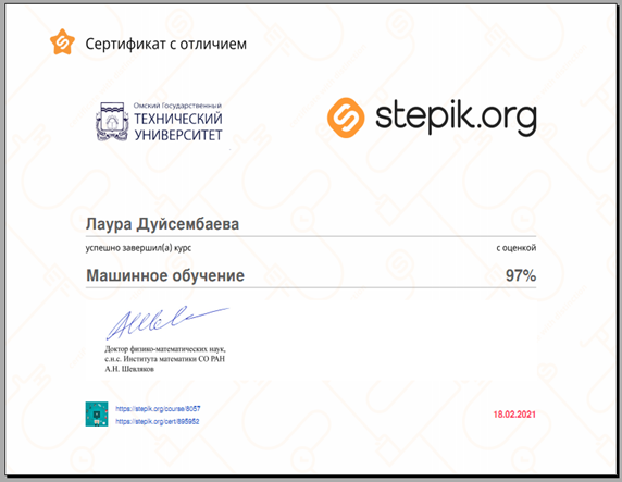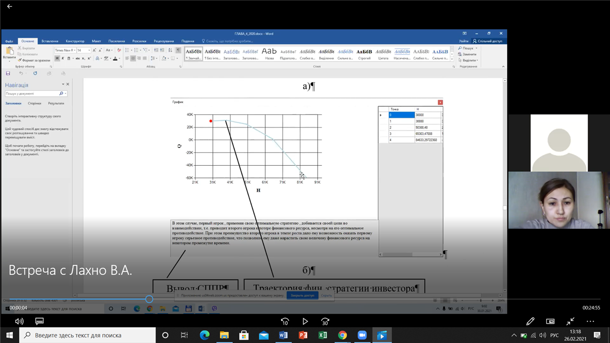 20.02.2021Докторантка Тургынбаева А.А. специальности ИС, 3 курса проходила научно-исследовательскую стажировку на кафедре компьютерных систем и сетей, факультета информационных технологий НУБиП, г. Киев (Украина) с 05 января по 20 февраля 2021г. в онлайн форме. Встреча с зарубежным научным консультантом В.А.Лахно по теме диссертационного исследования (в Zoom-е)