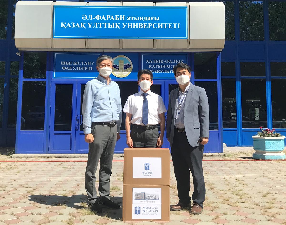 06.09.2021Перед началом нового учебного года на кафедре Дальнего Востока факультета востоковедения КазНУ им. Аль-Фараби состоялась встреча с врачами Медицинского центра «Донсан» (директор Чхве Ынчжу), на которой прошло вручение корейских масок (KF94).
