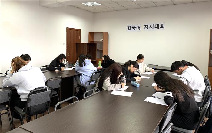 23 ноября 2023года на кафедре Дальнего Востока факультета востоковедения КазНУ им. Аль-Фараби при поддержке Центра образования Республики Кореи в Алматы в рамках «Недели корееведения» проведен Конкурс на знание корейского языка под руководством профессором Ли Бёнг Джо. В конкурсе приняли участие 12 первокурсников, конкурс прошел с большим энтузиазмом и интересом. Вопросы по корейскому языку тестировались в формате TOPIK (Тест на знание корейского языка). Поскольку участники учились на кафедре всего 3 месяца и сдают тест, вопросы по корейскому языку могут оказаться немного сложными для участников первого курса. Тем не менее, можно сказать, что это значимое соревнование, поскольку участники-первокурсники могут заранее узнать свой уровень корейского языка в середине семестра. Участникам, занявшим призовые места в конкурсе, были вручены денежная премя и подарки.