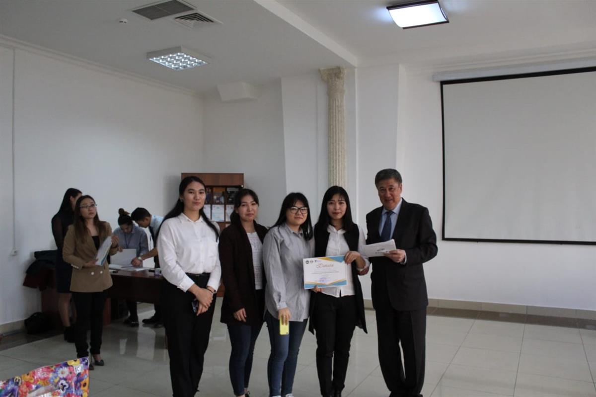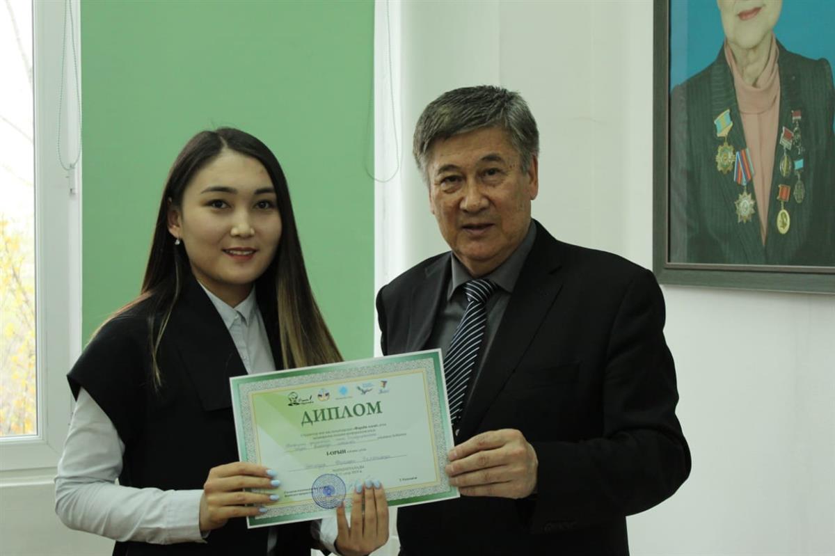 Диплом за третье место по секции: «Современные проблемы биофизики, физиологии и биомедицины» для представления на диплом ректора – Әліқул А.Б, магистрантка 1 курса Казахского национального университета имени аль-Фараби, тема доклада: «Гуманитарлық бағыттағы мамандықтарға заманауи жаратылыстану концепциясы пәнінен сабақ берудің әдістемесі». Научный руководитель д.б.н., профессор Торманов Н.Т.
