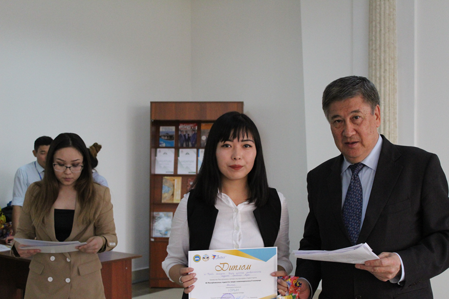 Диплом за второе место по секции: " Современные проблемы биофизики, физиологии и биомедицины " для представления на диплом ректора – Еркенова Н. студентка 3 курса Казахского национального университета имени аль-Фараби, тема доклада: «Сrataegus sanguine – өсімдігі сығындысының жануарлар қанының биохимиялық көрсеткіштеріне әсері». Научный руководитель РhD старший преподаватель Ыдырыс Алибек.