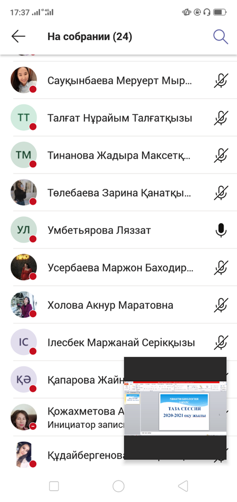 09 декабря 2020 года в 17:00 часов на платформе Microsoft teams, в онлайн формате, со студентами 3 курса по специальности «5В060700 Биология» кафедры биофизики, биомедицины и нейронауки кураторами-эдвайзерами Умбетьяровой Л. Б. И Кожахметовой А. Н. был проведен кураторский час на тему «Чистая сессия».